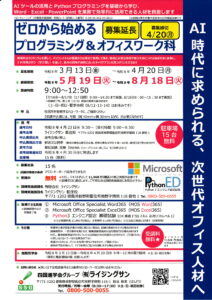 【詳細】 ⇒ ゼロから始めるプログラミング&オフィスワーク科