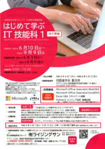 IT技能科 1では、パソコンスキル(基礎から応用)、AI、AI 生成(ChatGPT・Copilot・Gemini)